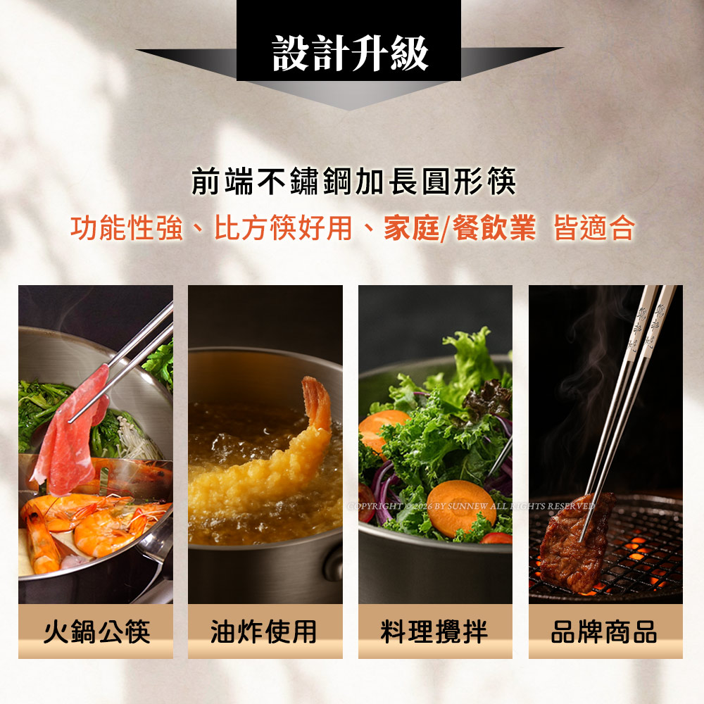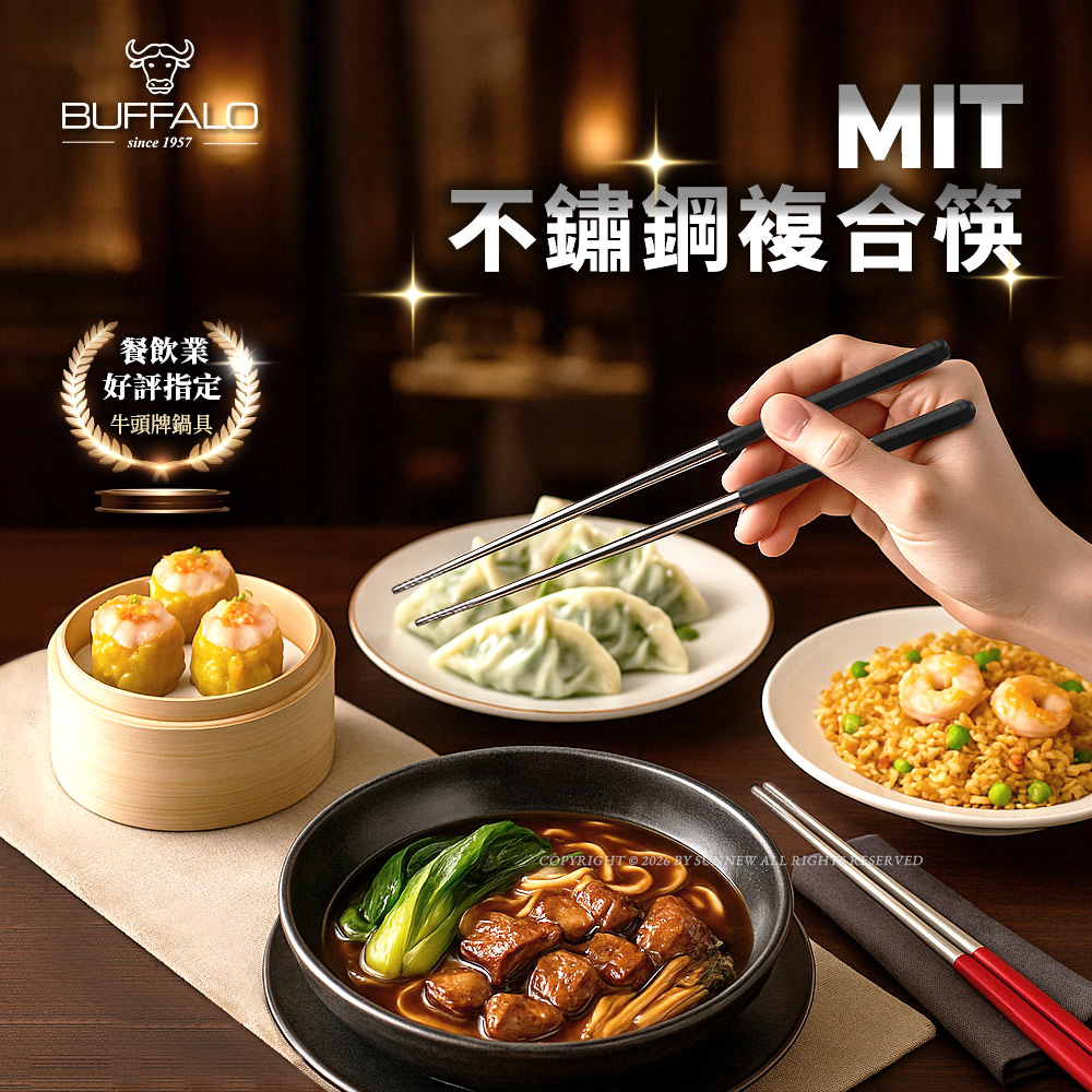 營業用商品 - 加長版不鏽鋼複合筷六角23cm (黑/白/綠/紫/灰) - 牛頭牌炊具