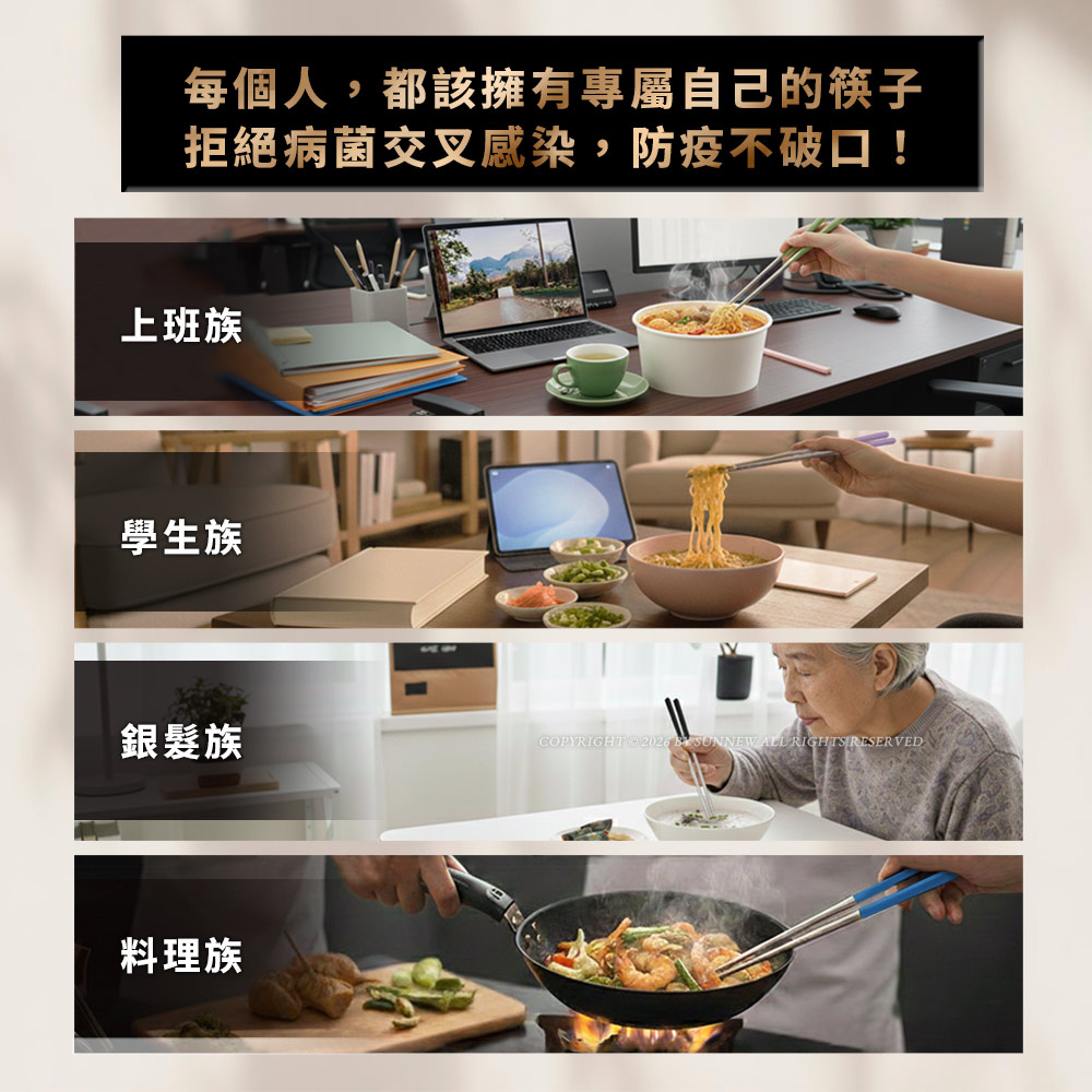 每個人都應該有專屬自己的筷子,拒絶病菌交叉感染,防疫不破口。